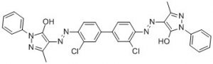 Ķīmiskais nosaukums: 4,4 '- [[3,3' - dihlor (1,1 '- bifenil) - 4,4' - diil] bis (azo)] bis [2,4-dihidro-5-metil-2 - (4-metil) - 3h-pirazol-3-ons] Molekulārā formula: c34h28cl2n8o2